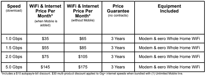 - WiFi with 3-Year Price Guarantee- With Astound’s simple, no-surprise pricing, subscribing to speeds of 1 Gig and above locks in a customer’s monthly rate for three years, no contract required. One-year subscriptions are also available for speeds below 1 Gig.