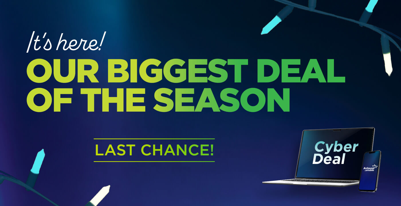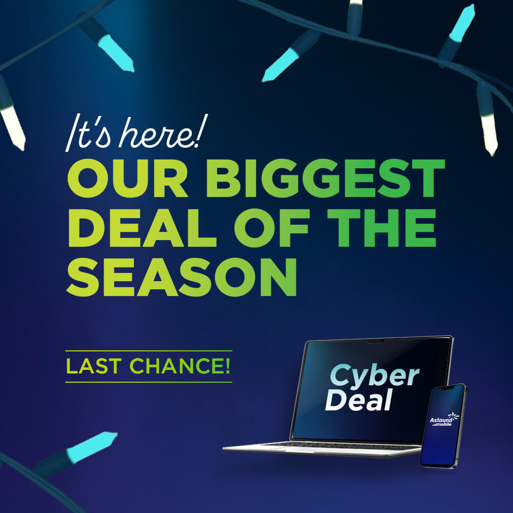 *Internet speeds vary, not guaranteed. Certain equipment may be required. See astound.com for details. Modem req’d. No contracts. Astound Internet is powered by fiber and connected to the premises via coaxial connection or fiber, where available. Delivery methods may vary by area. Subject to availability. Ltd-time offer; subj. to change without notice. Speeds under 1 Gig, pricing valid for 12 mos. Price for life on Gig+ internet service. Add’l fees apply for taxes, surcharges, & data overages, & are subj. to change. For details visit astound.com/fees. Enhanced WiFi or Whole Home WiFi included with Gig+; $5/mo for lower speeds or add’l devices. Regular rates apply after promo ends. Monthly price shown includes discount for enrolling in autopay & e-bill. $10 off/mo w/ bank acct autopay or $5 off/mo w/ credit/debit card autopay. Valid email & enrollment req’d. Must enroll w/in 30 days of order. Discount appears within 3 bill cycles, ends if autopay/e-bill is canceled, svcs change, or acct isn’t in good standing. ^Astound Mobile req’s Astound Internet service for activation. Max 5 lines. Equip., intl./roaming charges, taxes, fees extra & may change. Astound not liable for svc disruptions or outages. Higher rate applies if Internet not maintained. Mobile svc only in Astound areas. Pricing subj. to change. Data may slow during congestion. After 20GB, Unlimited plans slow to 768 Kbps; 1.5GB/3GB plans capped. No rollover; add’l data $10/GB. Coverage varies. Some features may require specific plans. Mobile svc includes BIAS w/ data, voice, texts & SMS. Other restrictions may apply. See astound.com/mobile for details. Offer valid for new res. customers or former customers in good standing w/out Astound svc in past 60 days. Add’l svcs, equip, premiums & tiers extra & subject to add’l charge & reg. increases. $14.99 one-time activation fee (plus install) applies & may change. Taxes & surcharges extra & subj. to change. WA RESIDENTS: unless otherwise specified, price does not include 2% Regulatory Administration Fee. Cust. responsible for any accrued charges. Subj. to credit check. Not all svcs/speeds avail. in all areas. 30-Day Money-Back Guarantee for new residential customers who cancel within 30 days of install. Maximum refund is equal to one month’s monthly recurring service fee of services & equip. ordered & installed. Refund within 60 days after conditions are satisfied. Refund not applicable to usage-based fees. All svcs are governed by Astound Customer Terms & Conditions found at astound.com/policies-disclaimers. © 2025 Radiate HoldCo, LLC d/b/a Astound Broadband. All rights reserved.